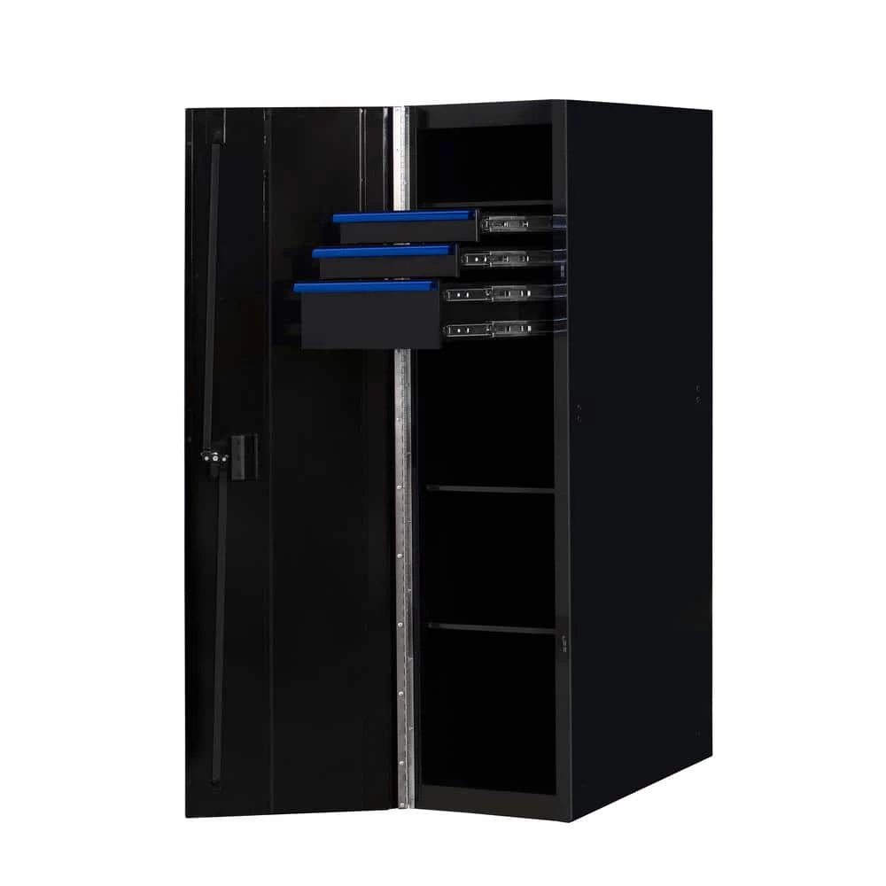 Extreme Tools® RX Series RX192503SL 19” 3 Drawer and 3 Shelf Side Locker is the perfect add-on to expand the RX Series tool boxes. This professional quality side locker features 3 drawers and 3 shelves (2 adjustable and one fixed.) Each drawer uses full-extension ball bearing slides that let you load 100-200 lbs. per drawer (200 lbs. for drawers with double slides.) The adjustable shelves allow you to store large, bulky items with ease. The side locker attaches to RX Series 72”W x 25”D or 55”W x 25”D roller cabinets. The heavy duty bracket and bolts used to attach to the roller cabinet mean that no casters are needed to support the side locker making it easier to move. We also included PVC drawer liners to protect the drawers. The RX Series side locker gives you the extra space you need to complete your set up.