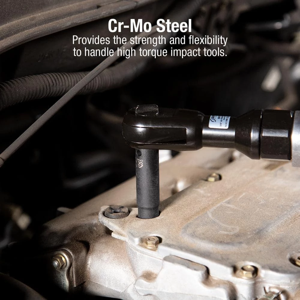 - Cr-Mo steel sockets provide the strength and flexibility to handle high torque impact tools