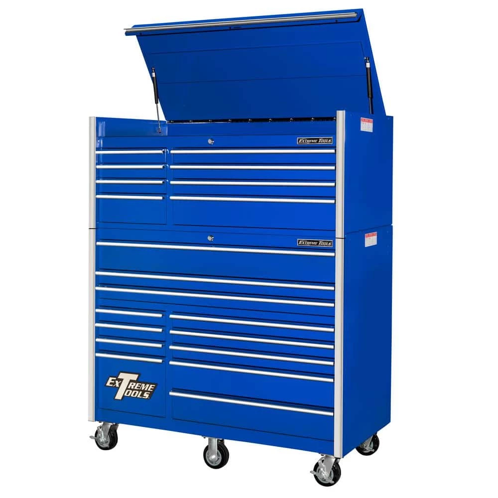 Extreme Tools THD Series THD552108CHBK 55 in. 8-Drawer Top Chest is part of our THD Series. This professional quality tool box features 2 deep drawers with dual ball bearing slides. The lid opens to reveal a large open till area that is perfect for storing over sized and large tools. Patented, self-latching, Quick Release drawer pulls keep drawers closed even when moving. Each drawer uses full-extension ball bearing slides that let you load 100 lbs. to 200 lbs. per drawer (drawers with double slides). This roomy top chest gives you loads of space at an affordable price with the assurance of Extreme Tools quality.
